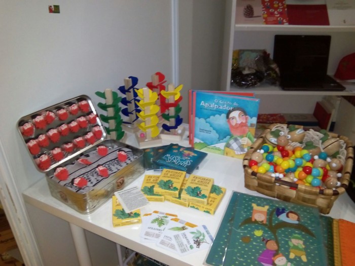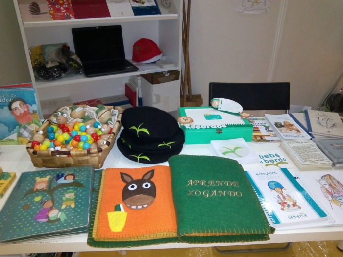 Vinde-nos visitar. A nossa banca fica entre a Bebeteca e o Espaço Infantil. No Paço da Cultura de Ponte Vedra.
