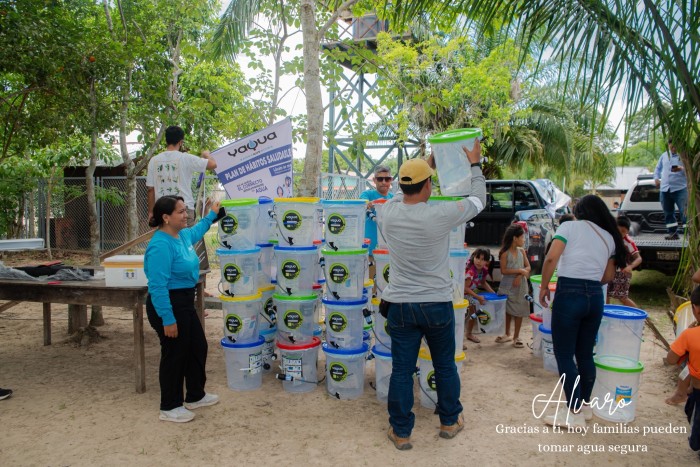Un día antes de la jornada central, el equipo de YAQUA llegó a la comunidad para coordinar y preparar la implementación. Niños, familias y el jefe comunal participaron activamente, ayudando a acopiar e instalar los sistemas de filtración, apropiándose desde el primer momento de la solución.