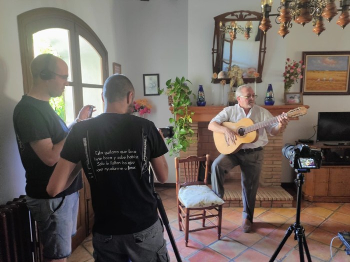 Como ya relatábamos en un post anterior, es Julio quien realiza las tareas previas de localización de los protagonistas de cada capítulo. Una vez establecido el contacto, se realiza una primera visita en la que se entrevista al protagonista/s buscando elementos de interés en relación al tema de la guitarra y su universo musical y social: aprendizaje, contexto de esta música, aspectos técnicos (afinaciones, técnicas de golpeo, estéticas sonoras, etc.) y repertorio característico del intérprete o de la zona. En todo caso, se busca que cada protagonista aporte un factor diferenciado al proyecto, algo que complete la visión de lo que habría podido ser la guitarra tradicional y su mundo en su etapa de esplendor.